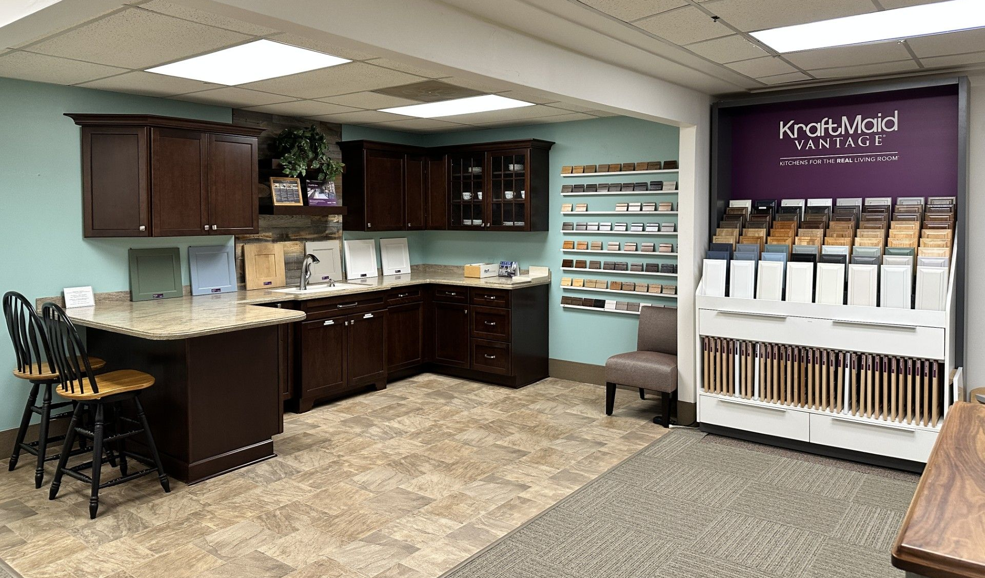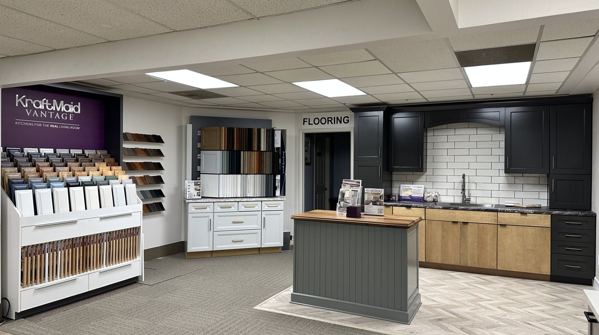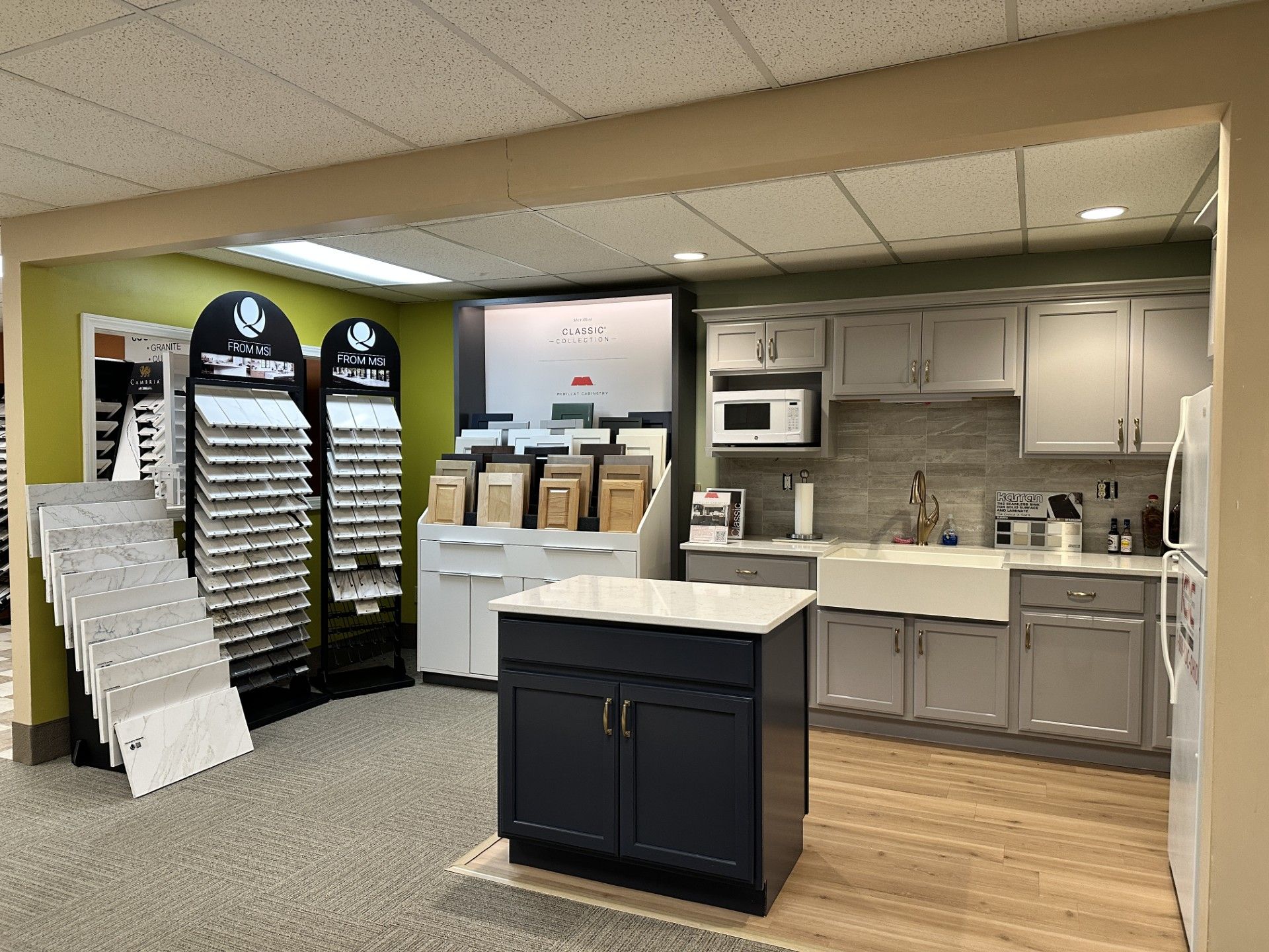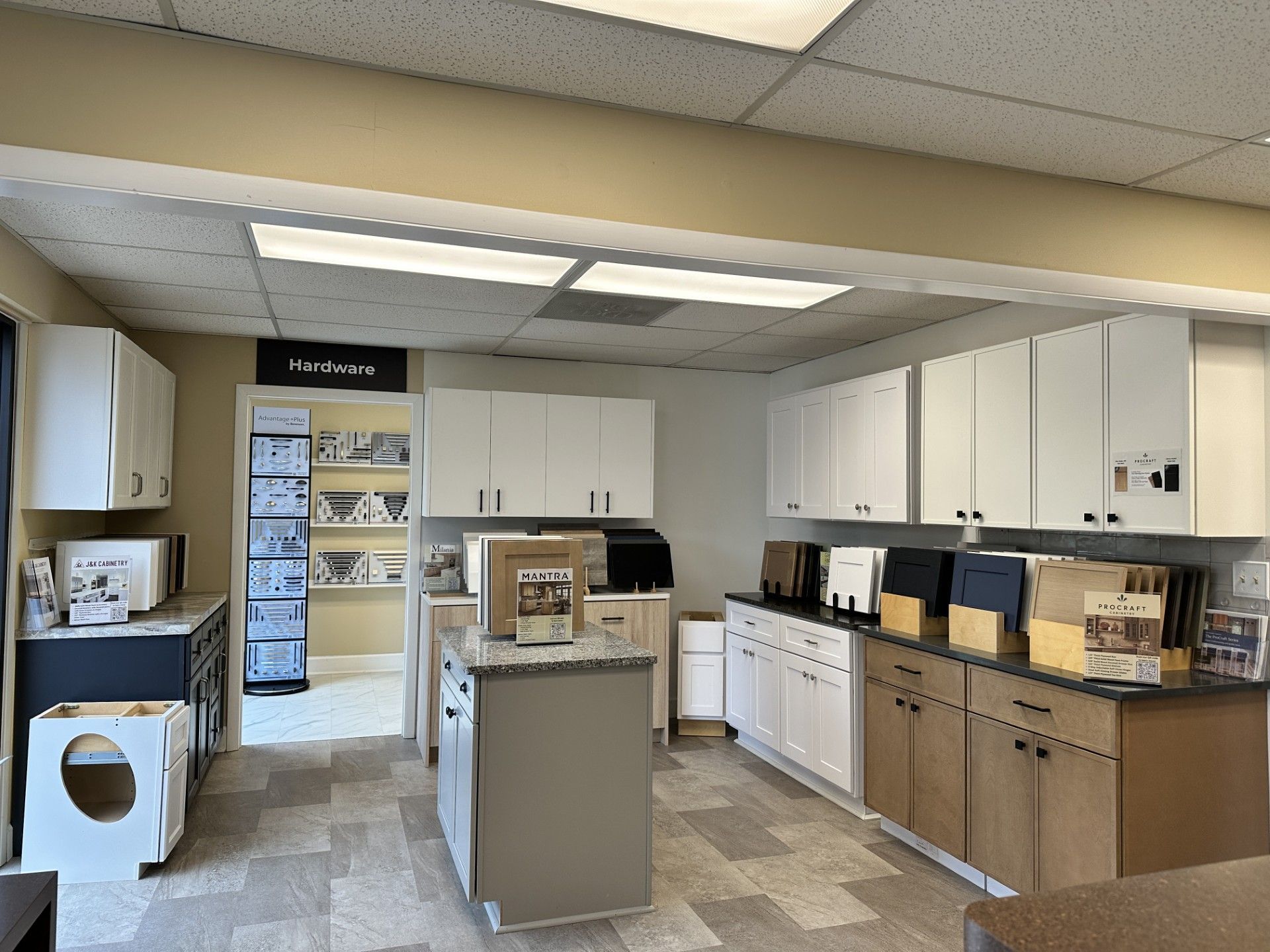 While at our store, clients can explore our showrooms to view samples and make their material selections, including cabinetry, countertops, backsplashes, flooring, and hardware.