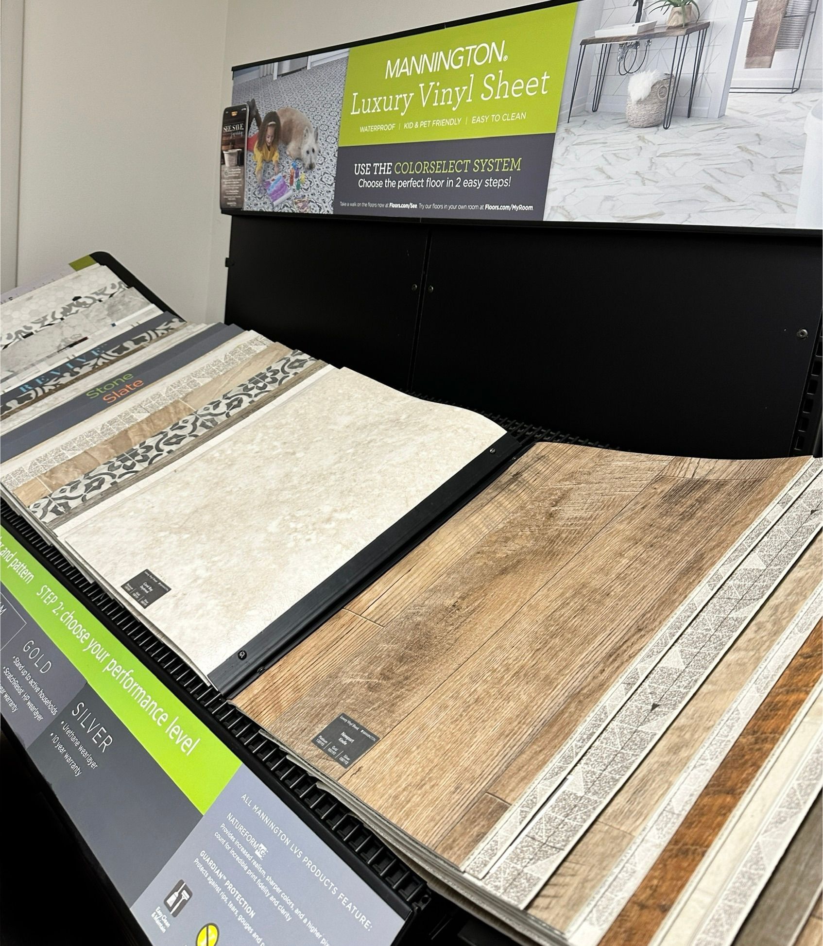 The newer brands of luxury vinyl tile continue to be popular at every price point. They are waterproof and great-looking, mimicking in high definition the look of hardwoods and stone. We also offer an engineered product that is real hardwood. Larger format tiles, often in 12 by 24-inches are popular.