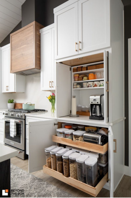 Beautiful kitchens often fail at storage planning. The result? Counters covered in appliances, random piles of mail, and that dreaded “junk drawer” multiplying across the room.